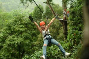 Enjoy 20 platforms, 11 zip lines, 2 rappel lines, 2 suspension bridges, a Tarzan swing, Superman and the Quick Jump. Also butterfly garden, serpentarium and